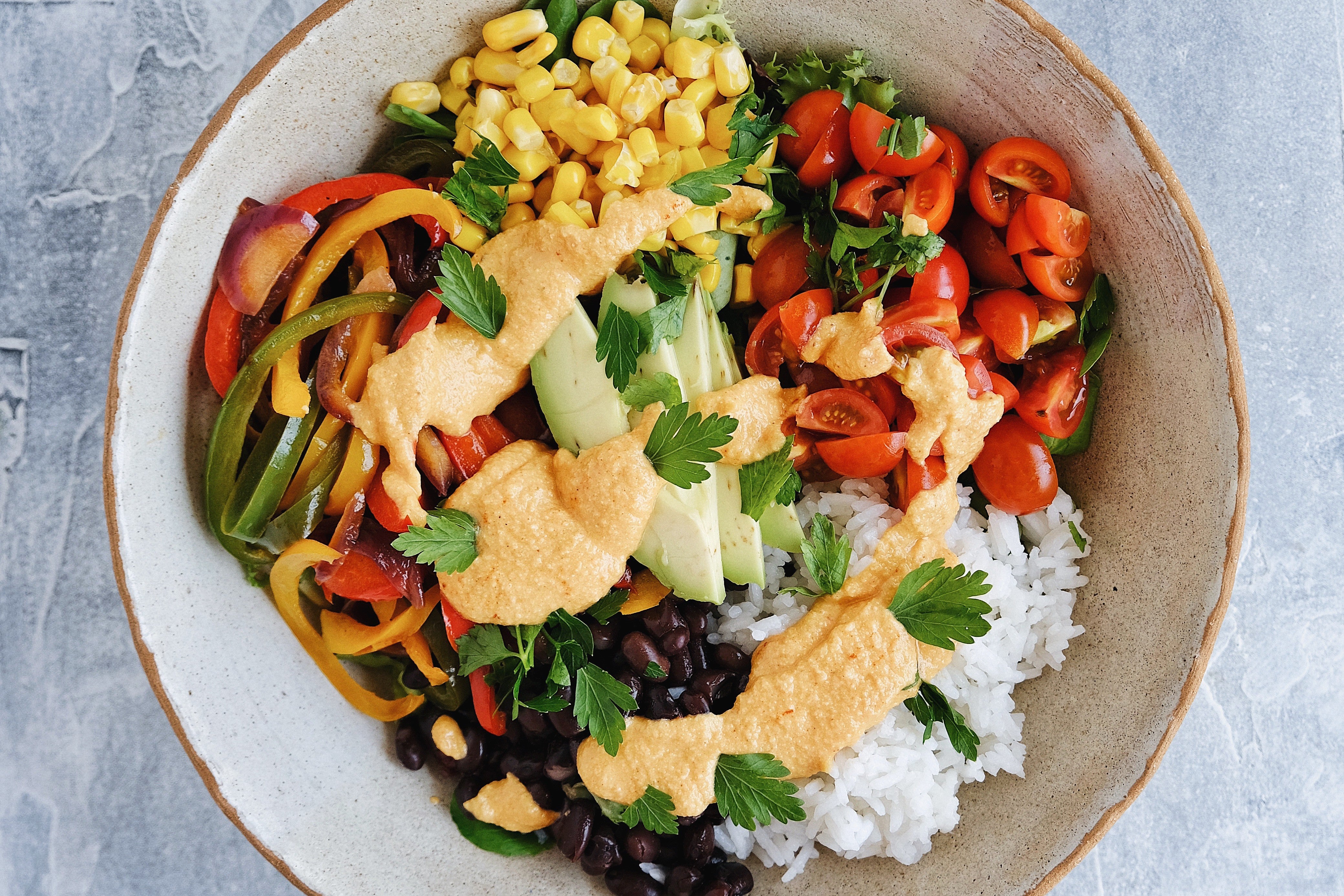 وعاء بوريتو مع لوموس والطماطم المجففة